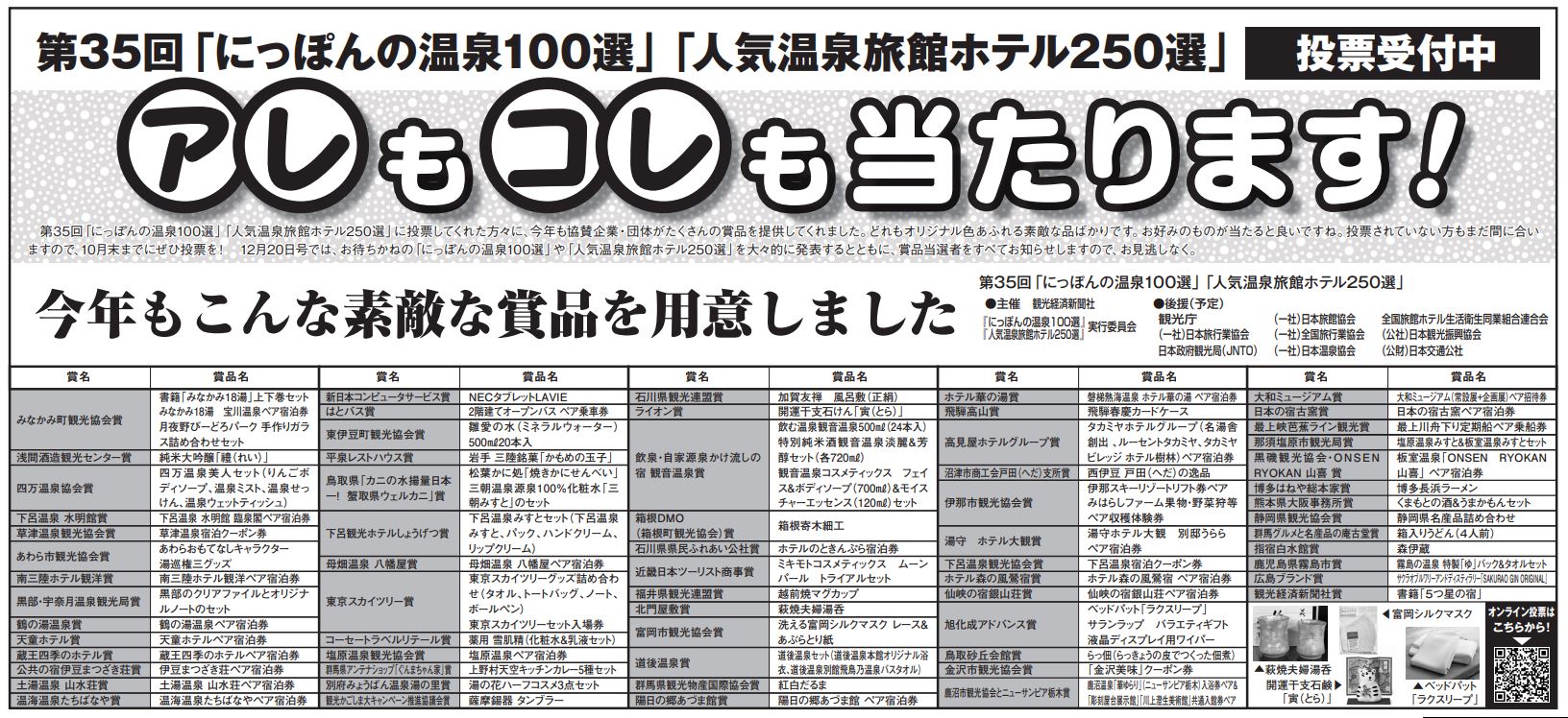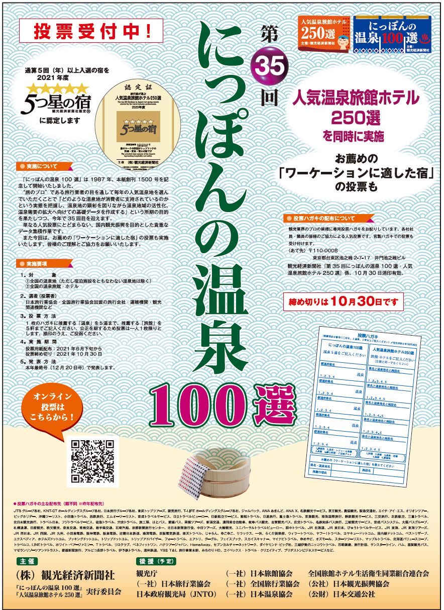 観光経済新聞社主催「第35回にっぽんの温泉100選・人気温泉旅館ホテル250選」投票受付中!