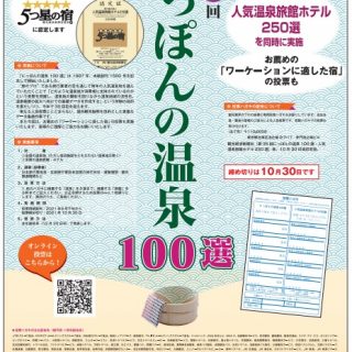 「にっぽんの温泉100選」オンライン投票受付中!400名様に豪華賞品が当たる!