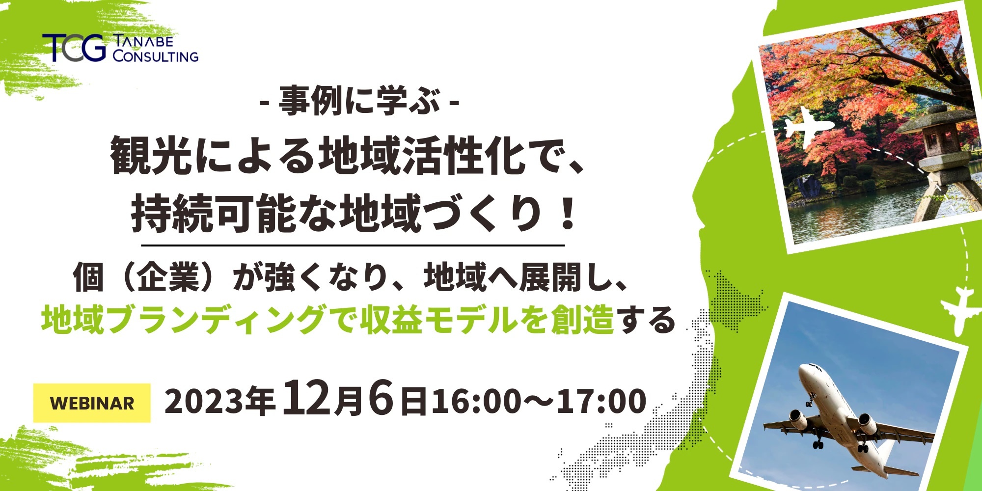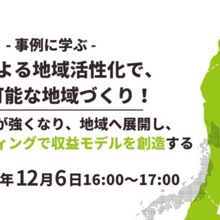 「観光による地域活性化で、持続可能な地域づくり! 個(企業)が強くなり、地域へ展開し、地域ブランディングで収益モデルを創造する」 12月6日オンラインで無料開催 TCG主催