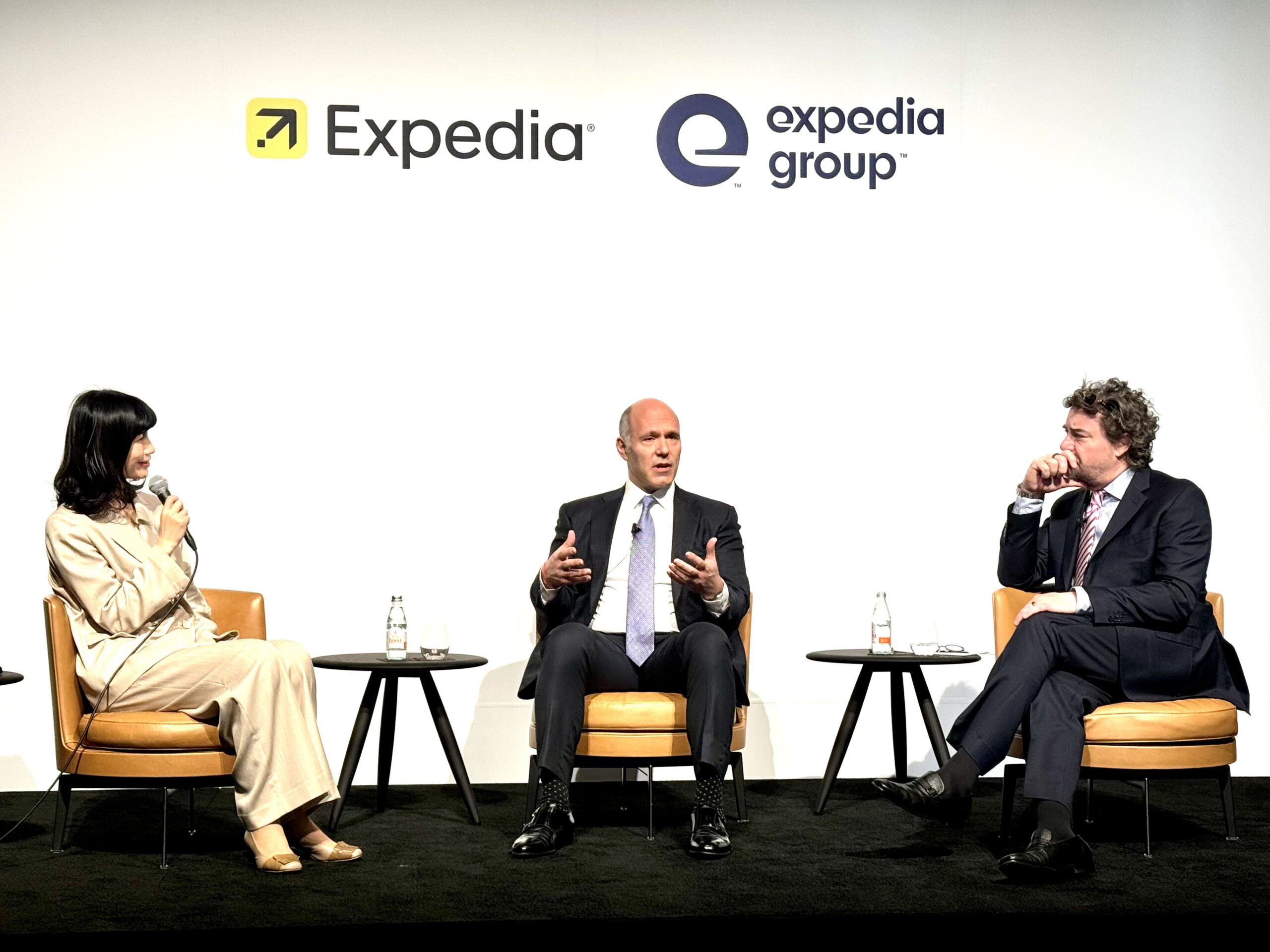 エクスペディアが2月20日にブルガリホテル東京で開催した新機能とカスタマーサポート強化の発表会見で、ピーター・カーンCEOとジョン・ギーゼルマンブランド統括、同社日本法人の木村奈津子代表取締役によるトークセッションが行われた。新しいサービスの紹介のほか、同社のサービスを経由して日本を訪れる観光客の特徴や消費傾向を語った。