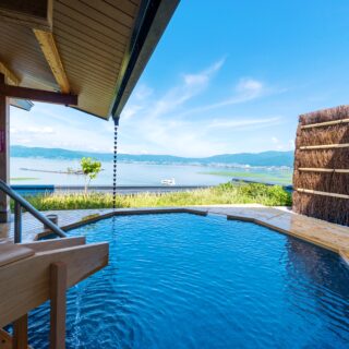 長野県の中心に位置する上諏訪温泉は、長野県最大の湖「諏訪湖」の畔にある温泉地で市内に30以上の宿泊施設がある。JR上諏訪駅から徒歩10分、中央道諏訪ICからも車で10分とアクセスが良い。東京からは特急あずさで2時間10分、中央道利用で2時間30分と気軽に行ける。