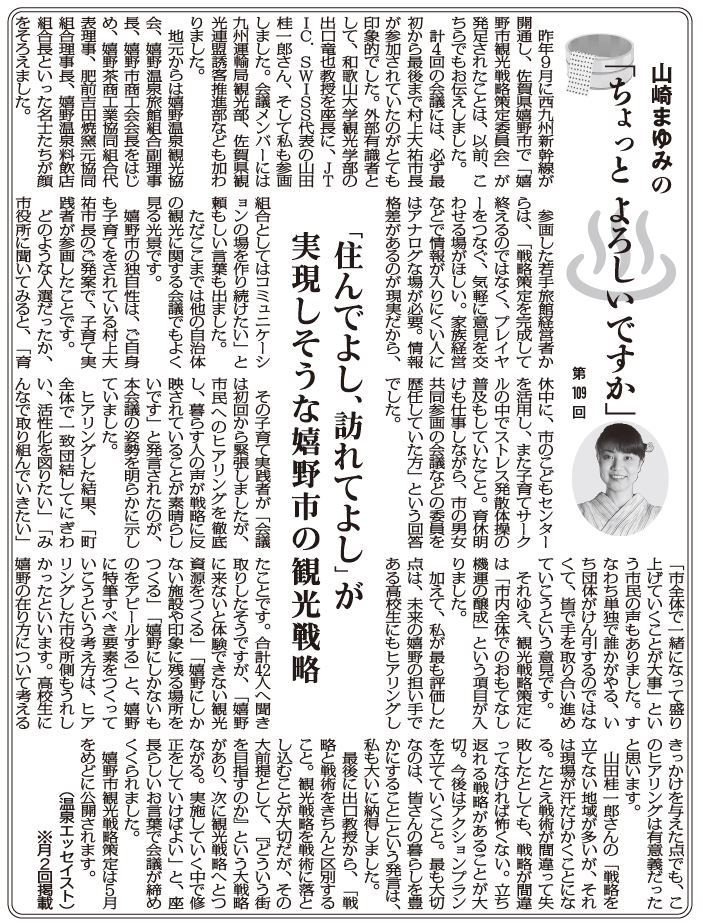【ちょっと よろしいですか 109】「住んでよし、訪れてよし」が実現しそうな嬉野市の観光戦略 山崎まゆみ
