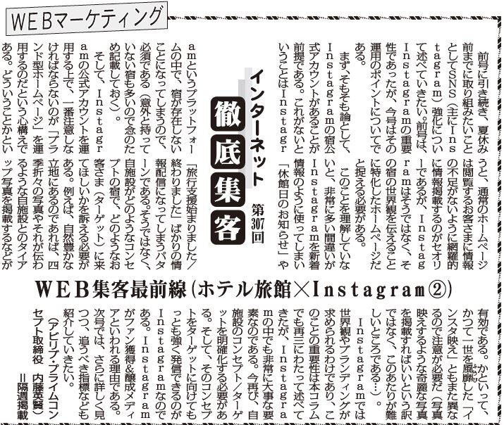 Instagramでは世界観やブランディングが求められるわけであり、このことの重要性は本コラムでも再三にわたって述べてきたが、Instagramの中でも非常に大事な要素なのである。今再び、自施設のコンセプト/ターゲットを明確化する必要がある。そして、そのコンセプトをターゲットに向けてもっとも強く発信できるのがInstagramなのである。Instagramがファン獲得&醸成メディアといわれる理由である。次号では、さらに詳しく見つつ、追うべき指標なども紹介していきたい。