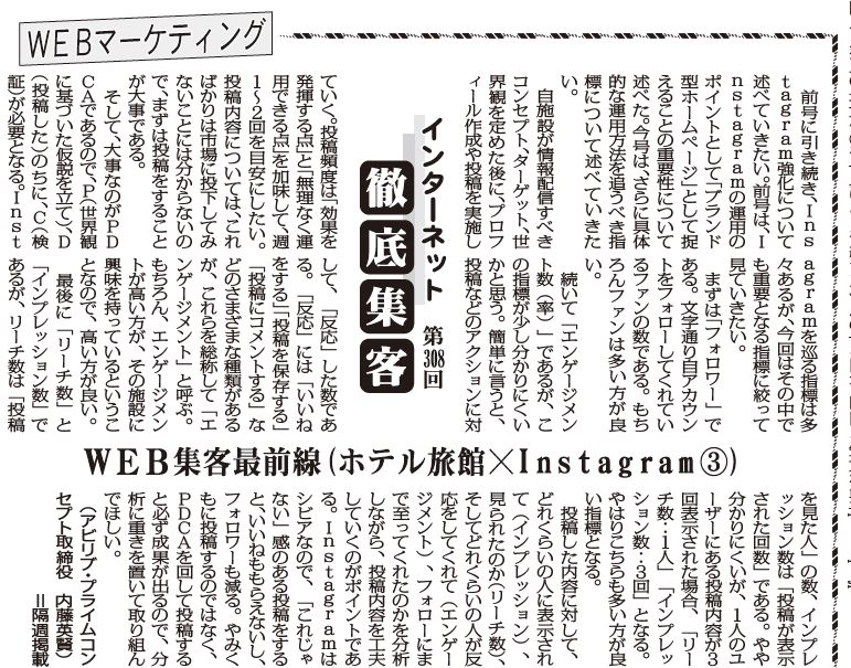 前号に引き続き、Instagram強化について述べていきたい。前号は、Instagramの運用のポイントとして「ブランド型ホームページ」として捉えることの重要性について述べた。今号は、さらに具体的な運用方法を追うべき指標について述べていきたい。