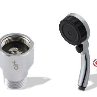 シャワー用節水装置(左)とナノバブルシャワーヘッド