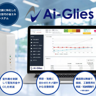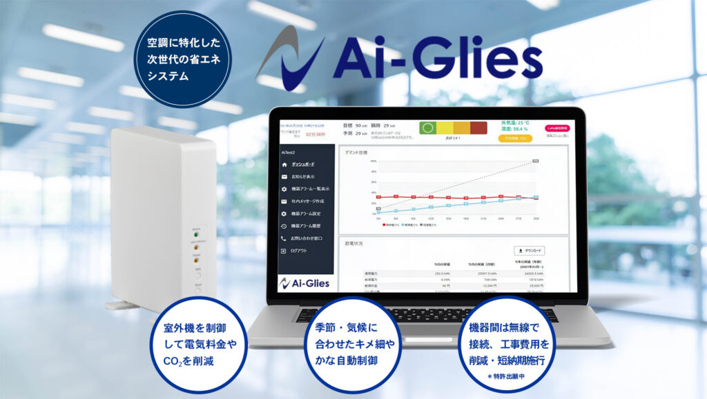 昨今の電気料金の高騰に伴い、同社では、節電・省エネシステム「Ai Glies(アイグリーズ)」の活用を提唱している。