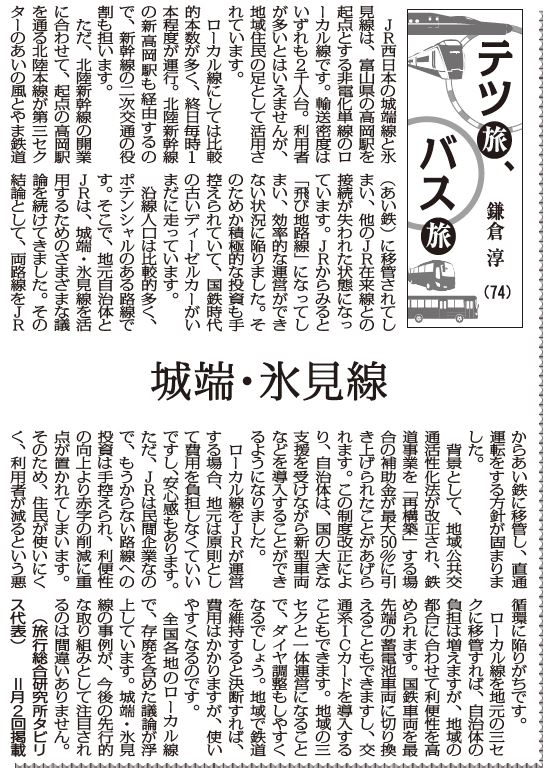 JR西日本の城端線と氷見線は、富山県の高岡駅を起点とする非電化単線のローカル線です。輸送密度はいずれも2千人台。利用者が多いとはいえませんが、地域住民の足として活用されています。