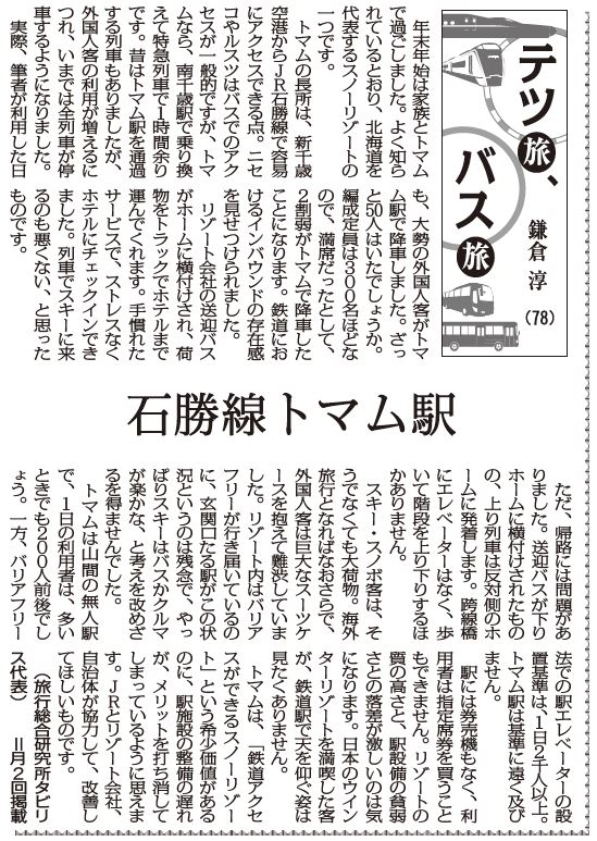トマムは、「鉄道アクセスができるスノーリゾート」という希少価値があるのに、駅施設の整備の遅れが、メリットを打ち消してしまっているように思えます。JRとリゾート会社、自治体が協力して、改善してほしいものです。