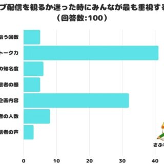 ライブ配信を観るか迷った時にみんなが最も重視することをアンケートにて調査したところ、1位は「配信者のトーク力」 でした。