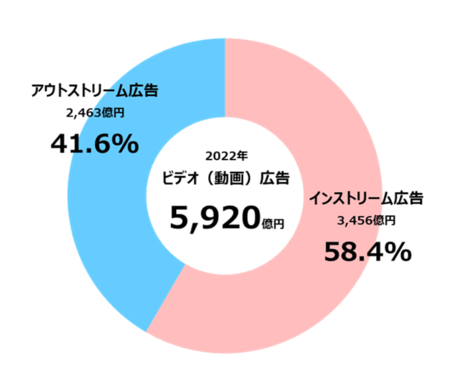 ビデオ(動画)広告は前年比115.4%の二桁成長となり、うちインストリーム広告は3,456億円で、全体の58.4%となった。
