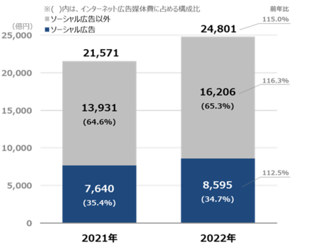 ~ソーシャル広告費は前年比112.5%の8,595億円、「SNS系」「動画共有系」を合わせて8割弱を占める~