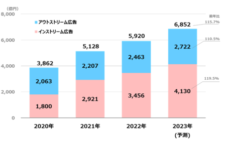 ~ビデオ(動画)広告は、2023年には6,852億円まで拡大する見込み~