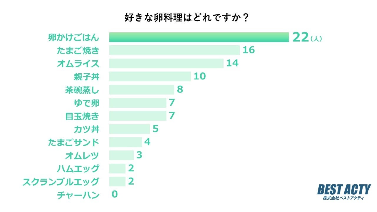 ベストアクティは5日、好きな卵料理についてのアンケート調査の結果を発表した。