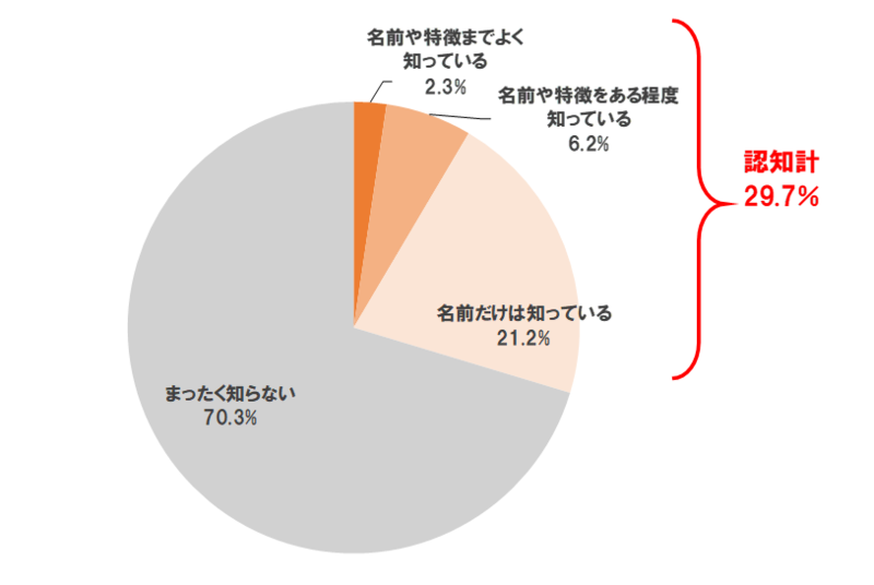 web3について、「名前や特徴までよく知っている」(2.3%)、「名前や特徴をある程度知っている」(6.2%)、「名前だけは知っている」(21.2%)を合計すると約3割(29.7%)となった。約7割(70.3%)が「まったく知らない」と回答し、まだ多くの生活者がweb3について認知していないことが分かった。【図表1】