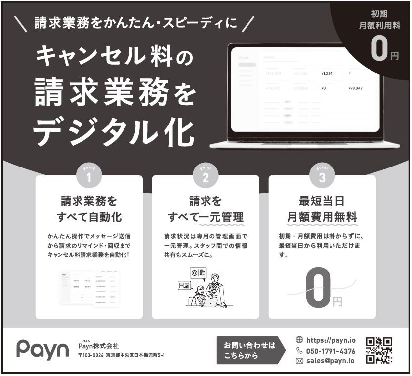 Payn(ペイン)はキャンセル料の請求業務をデジタル化するツール。2022年10月にサービスを公開した。