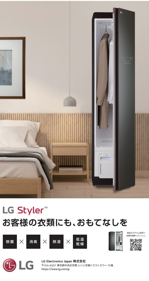 LGエレクトロニクス・ジャパン(東京都中央区)は、今回の関西ホテレスでマルチ機能空気清浄機シリーズLG PuriCareの新ラインアップ「AeroFurniture(エアロファニチャー)」と、スーツなどの衣類や小物をリフレッシュする「LG Styler(LGスタイラー)」を出展する。