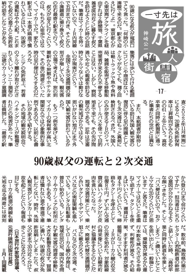 【一寸先は旅 人 宿 街 17】90歳叔父の運手と2次交通 神崎公一