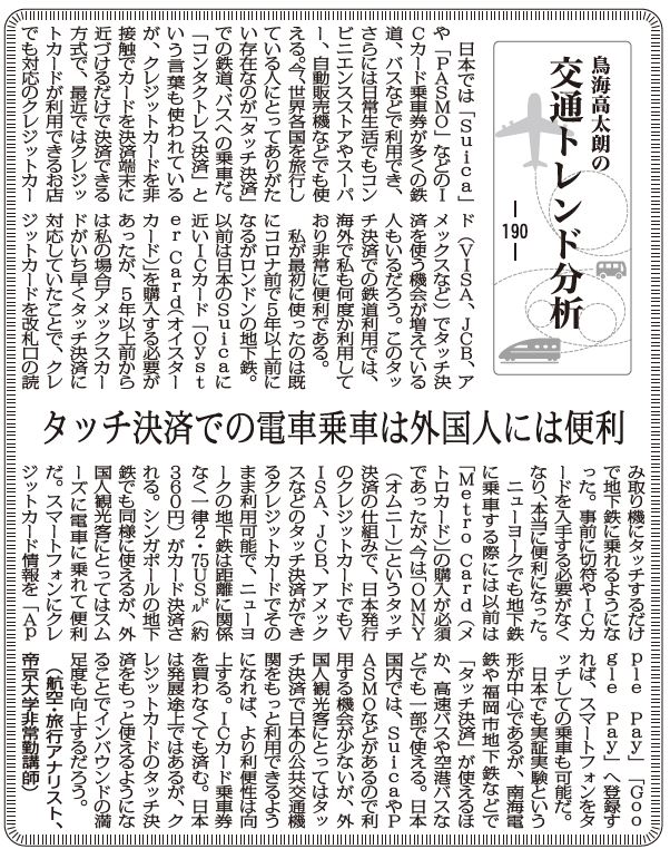 【交通トレンド分析190】タッチ決済での電車乗車は外国人には便利 鳥海高太朗
