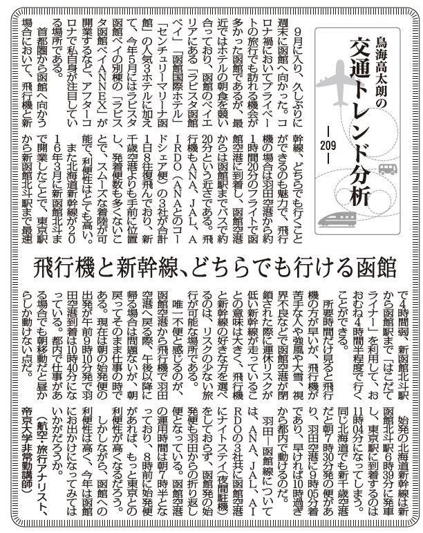唯一不便と感じるのが、函館空港から飛行機で羽田空港へ戻る際、午後以降に帰る場合は問題ないが、朝戻ってそのまま仕事の時である。現在は朝の始発便の出発が午前9時10分発で羽田空港到着は10時40分になっている。都内で仕事がある場合でも朝移動だと昼からしか動けない点だ。
