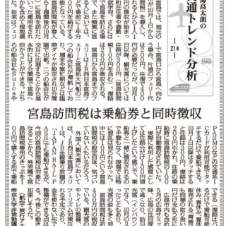広島・宮島では、地元の廿日市市が10月1日から「宮島訪問税」を導入し、宮島を訪れる人から1人1回100円の徴収が始まった。宮島町在住者や通勤・通学、未就学児、さらには修学旅行で宮島を訪れる場合は不要で、また頻繁に宮島を訪れる人においては、市役所などで事前に1年分として500円を納付することも可能となっている。