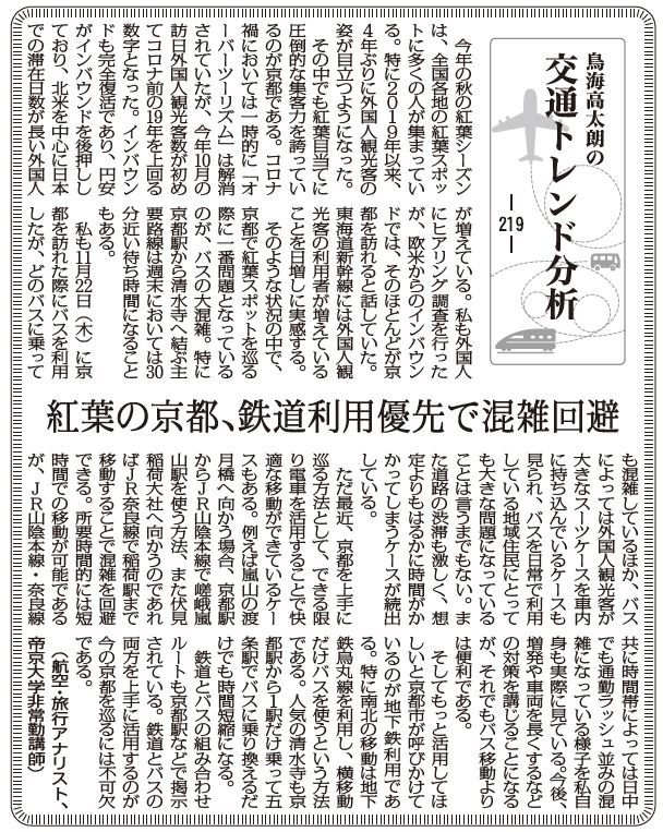 【交通トレンド分析219】紅葉の京都、鉄道利用優先で混雑回避 鳥海高太朗