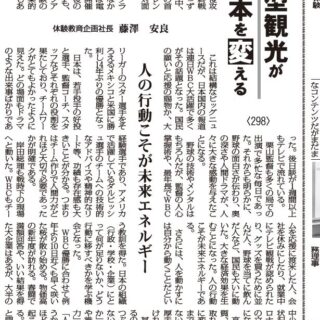 某CMは「そこに愛はあるのか」と問いかける。暇つぶしでも、時間稼ぎでもない。「旅に感動はあるのか」と問われている。社会や誰かのためになる「人間力」を高める「学びの旅」「人との交流の旅」などもうかり売れる商品素材は山ほど眠っている。探し求め、起こすために現場を訪れる。「行動力があるのか」と問われている。