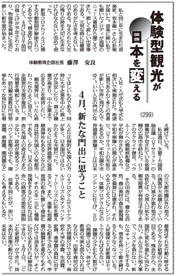 入社・入庁式も入学式も相次いで実施された。希望に満ちあふれて多くの若者が新しい世界に飛び込んでゆく。いい人生の門出となってほしいものである。同時に大手企業を中心に賃上げが決定したり、賃上げ機運が高まり、中小企業まで広まることを期待したい。