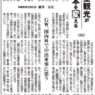 山麓の尻別川を豊富な雪解け水が流れている。水は冷たいはずだがラフティングも始まっており、艇を運ぶトラックも頻繁に行き交っている。宿泊施設の多くが相当なにぎわいを見せていた。千歳空港行きの航空機も満席で、札幌のホテルも残室が少なく、レンタカーも予約がとりにくく、しかも、全て割り高である。それはれっきとしたGW現象であり、ニセコは国際的なリゾートの様相である。