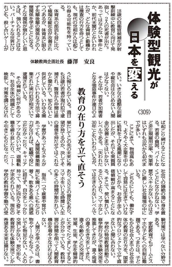 【体験型観光が日本を変える309】教育の在り方を立て直そう 藤澤安良