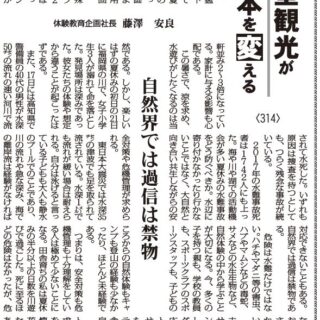つまりは、安全対策も危機管理も十分理解をしている人は極めて少ないことになる。田舎育ちの私は夏休みの半分以上の日数を川遊びで過ごした。死に至るほどの危険はなかったが、危ないと感じたことは覚えており、それは、ずっと生かされ続けてきている。体験から学ぶに勝る教育はない。