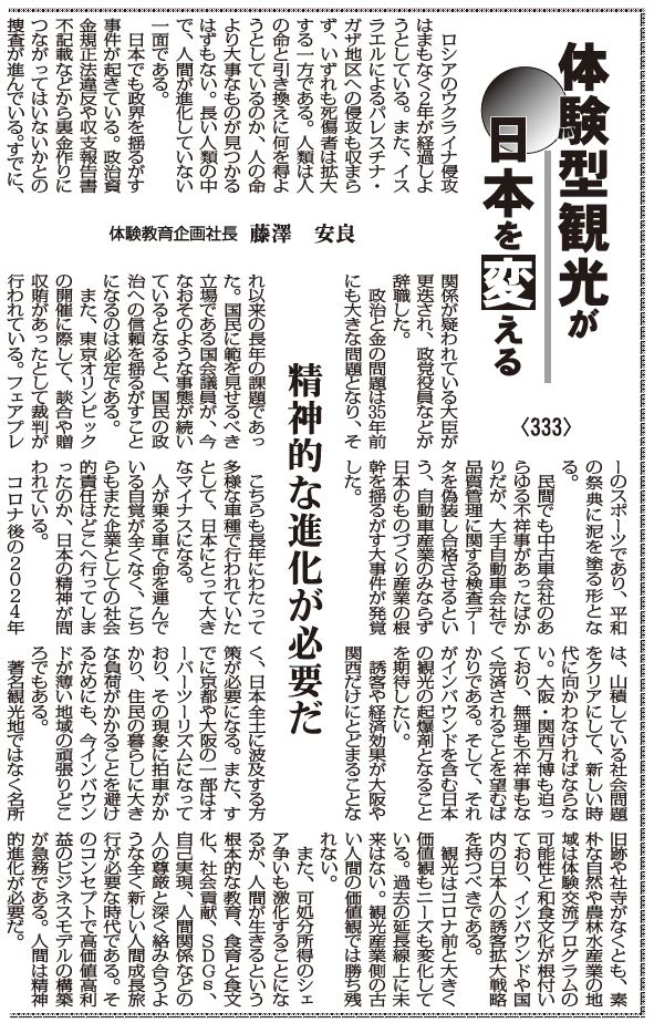 【体験型観光が日本を変える333】精神的な進化が必要だ 藤澤安良