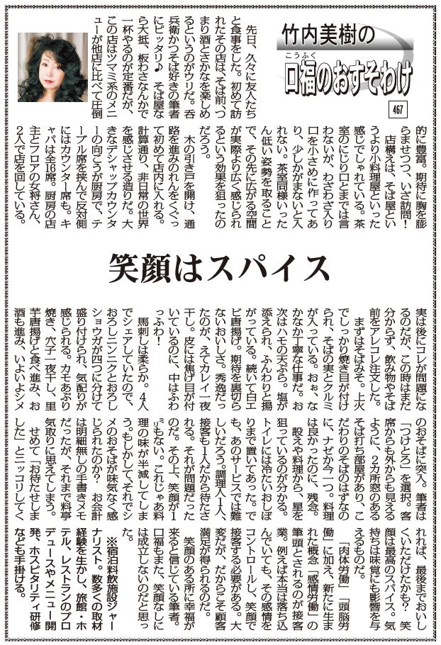 【口福のおすそわけ 467】笑顔はスパイス 竹内美樹