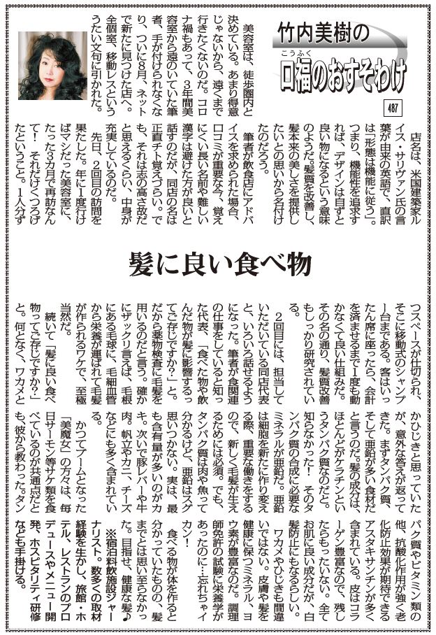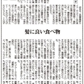 食べる物が体を作ると分かっていたものの、髪までとは思い至らなかった。目指せ、健康な髪♪