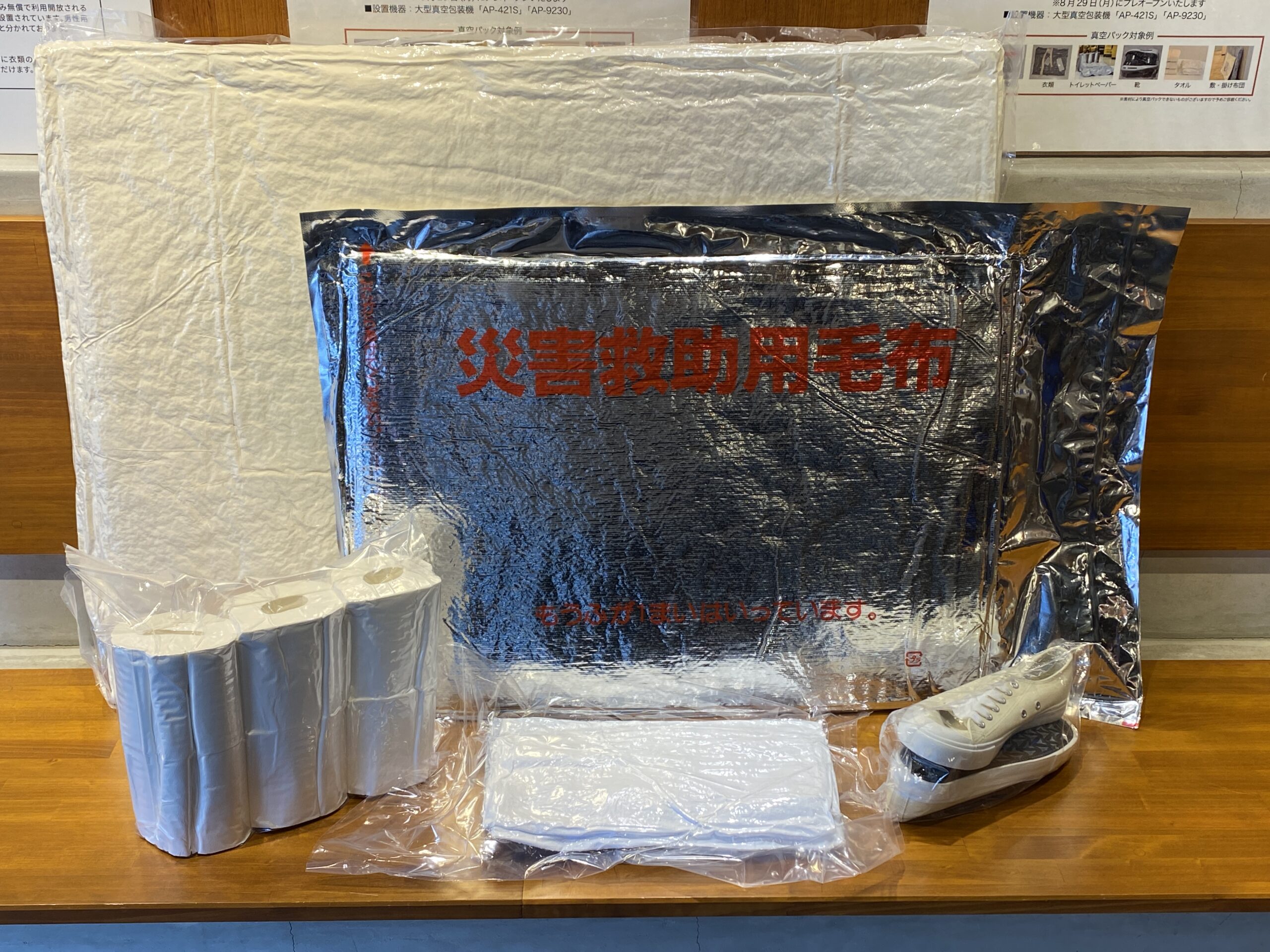 真空パックされた各種防災グッズ