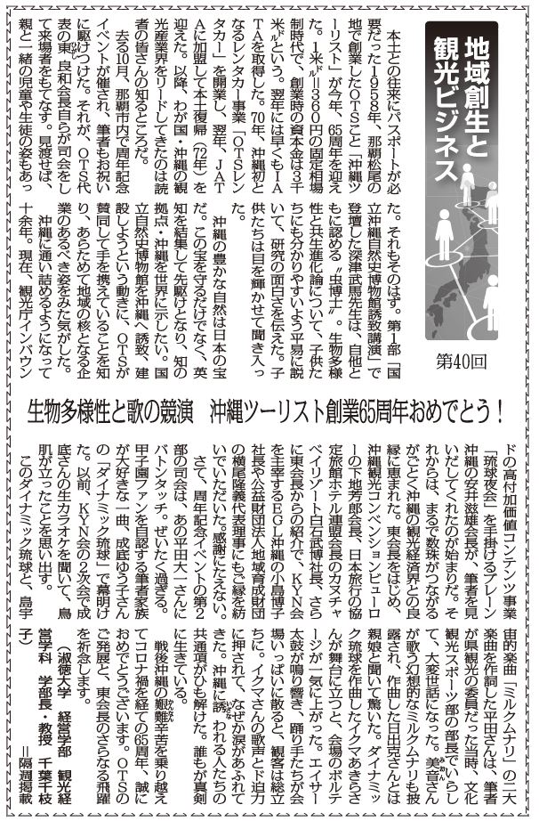 【地域創生と観光ビジネス40】生物多様性と歌の競演 沖縄ツーリスト創業65周年おめでとう! 淑徳大学経営学部観光経営学科 学部長・教授 千葉千枝子