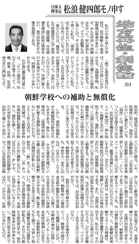 全国の自治体で声を上げてほしい。朝鮮学校への補助と無償化を行うべきだ、と。北朝鮮の核実験やミサイルの脅威は、友好関係を構築すれば解決する。私たちは、そのためにどんな努力をしただろうか。ひたすら非難するばかりで、ペナルティーを与えるだけとは情けない。