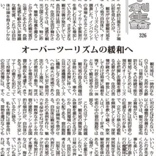 観光地は、一時的なものではない。名所や名跡には、日常的に観光客が訪れる。その持続可能な観光地にするためには、現在のオーバーツーリズムを把握し改善策を講じる必要がある。住民の苦情が続きつつ、野放しにしておけば将来に禍根を残す。行政と住民が一体となって観光地を守り抜かねばならない。