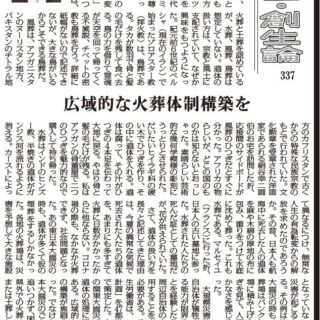 さて、遺体の扱い方を長々と記述してきた理由は、今夏の異常な気候で死去された人たちの遺体を、あまりにも多すぎて火葬に日数がかかったからに他ならない。コロナ禍の際も、なかなか火葬できず、社会問題となった。あの東日本大震災の時も、遺体が多くて仮の埋葬をするしかなかった。各地の火葬場は、災害を予想して大きな施設となっていないため、大災害が起こるとパンクする。その例は淡路・阪神大震災の時も、近辺の火葬場はパンクした。火葬場に積み上げられたひつぎを見て、人間の命のはかなさを感じるしかなかった。