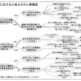 (1)新しい発見や成長の機会がある(2)ありのままの自分でいられる(3)周囲との交流を通じて、受け入れられる、信頼関係を築ける(4)ゆったりした時間や空間がある(5)自分の世界観を追求できる(6)状況に応じて柔軟に変化できる。