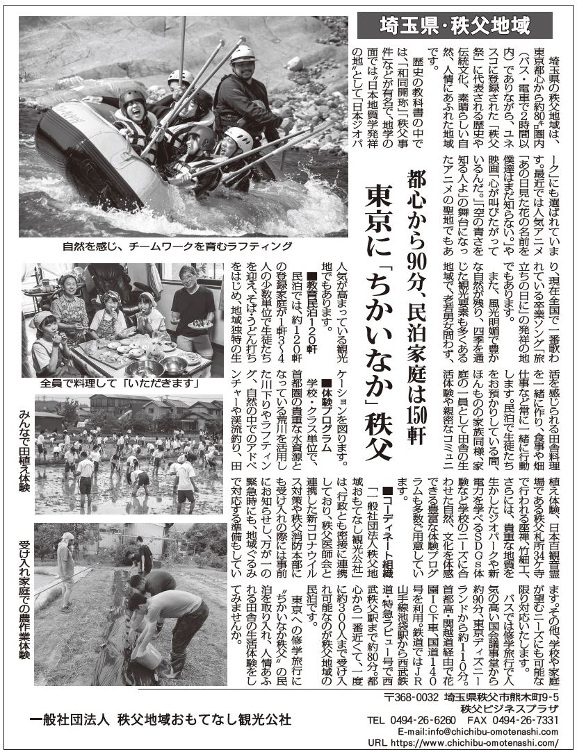 東京への修学旅行に”ちかいなか秩父”の民泊を取り入れ、人情あふれる田舎の生活体験をしてみませんか。