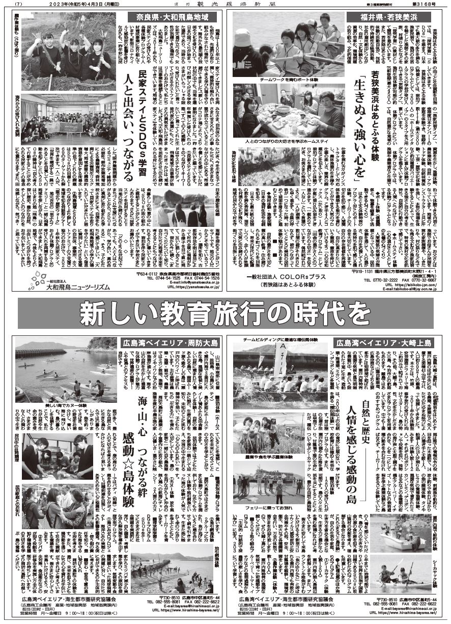 若狭路はあとふる体験では、「探究学習」「SDGs」を踏まえ、日本でも最大級の多さを誇る漁家民宿で、漁村の生活を軸とした漁師とその家族、村張り文化などを「探究学習」の素材として開発を進めています。また、若狭路はあとふる体験の活動自体が、包括的で持続性な経済活動、社会の雇用創出につながり、自然・文化体験から資源の効率化、環境問題の取り組み、文化的価値の向上と社会貢献を目指していきます。