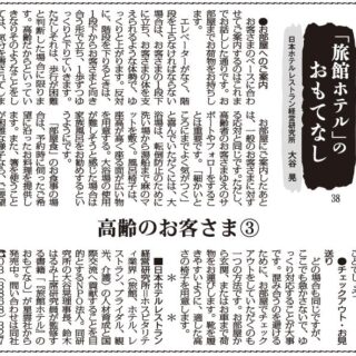 ■日本ホテルレストラン経営研究所=ホスピタリティ業界(旅館、ホテル、レストラン、ブライダル、観光、介護)の人材育成と国際交流へ貢献することを目的とするNPO法人。同研究所の大谷晃理事長、鈴木はるみ上席研究員が監修する書籍「『旅館ホテル』のおもてなし」が星雲社から発売中。問い合わせは同社TEL03(3868)3275。