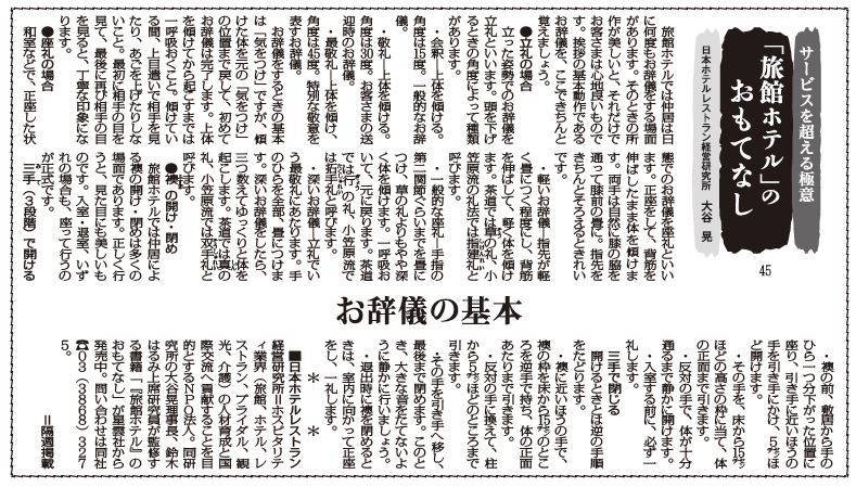 【旅館ホテルのおもてなし 45】お辞儀の基本 大谷 晃