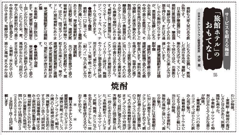 【旅館ホテルのおもてなし 55】焼酎 大谷 晃
