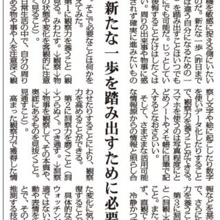 日常生活の中で、自分の周りにある物や事や人を注意深く観察し文字や絵に起こしたり数字を使いデータ化したりすることで、観察力を養うことができる。スマホを使うのは写真程度にとどめノートやメモ帳に自筆で記入するとなおさらいい。