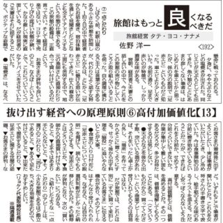 【旅館経営 タテ・ヨコ・ナナメ 192】抜け出す経営への原理原則6 高付加価値化13 佐野洋一