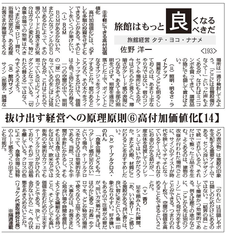 大事なのは、お客さまに心地良い場や時間を提供しようとする繊細な心を持つこと、そして少しでも高い価値を生むための工夫をすることである。決して「お金がないから」と、今の状態をあきらめないことだ。