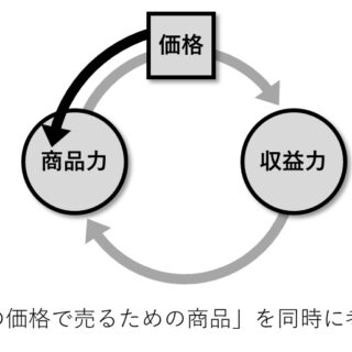 商品力と収益力は「ニワトリと卵」のようなもので、互いに因果関係にある。価格設定は商品力から収益力へと向かう矢印の中間にあるが、同時に「この価格で売るための商品はいかにあるべきか」という逆向きの思考を持つこと、そのような経営の構図を描いていくことが大切だと考える。