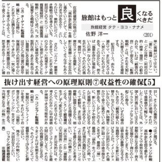 記念日ユース、赤ちゃん連れママ、また近ごろでは一人旅といったものがよくある。このほかにも、例えば「温泉を存分に堪能したい人の旅」なんていうものを打ち出し、そのための客室、提供サービスとともに滞在スタイルを提案して、新たな客層ニーズを生み出していくような手もあろう。