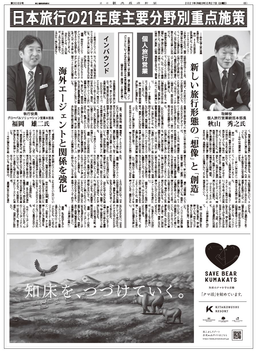 インバウンドの成長に隠れていたが、ここ数年、国内の需要が少しずつ縮小していた。小さくなったパイの中で、われわれがどう事業を進めるか。先ほど申し上げた通り、新しい旅行形態を創出し、提案しなければならない。